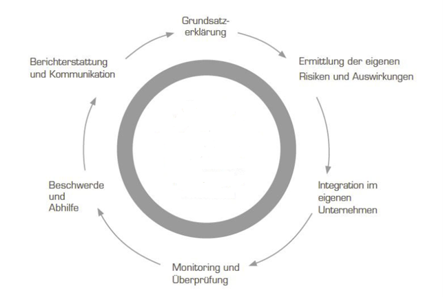 Wir setzen uns besonders dafür ein, Menschenrechtsverletzungen und Verstöße gegen Umweltstandards in unserem eigenen Geschäftsbereich sowie in unserer Lieferkette vorzubeugen, Menschenrechte zu stärken und Abhilfe zu leisten, wenn es zu Verstößen kommt. Unsere unternehmerische Verantwortung und unser Handeln richten sich nach den Kernelementen des Sorgfaltspflichtenprozesses der OECD: